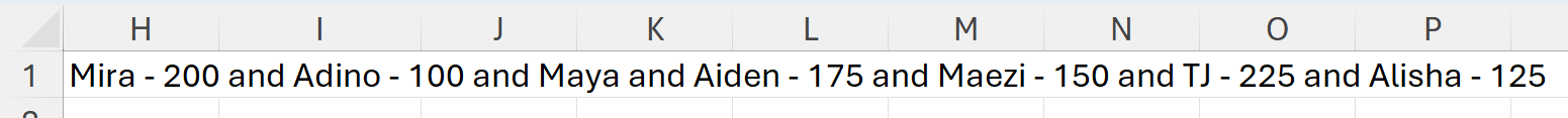 Let’s look at another example. In this case we have the list of students and the number of shirts they sold. When the data was entered it was done in a single cell. Here is the data: