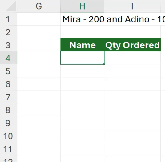You’ll notice that Maya has an error with her quantity. This is because no amount was entered for her. This is easily solved by using the [pad_with] part of the syntax. We will simply use the words “No Data”. Here is the syntax: